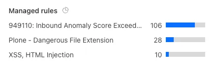 After generating enough requests to have a good sample logged in your Firewall Events, observe the actions that were taken in the Managed rules section:
